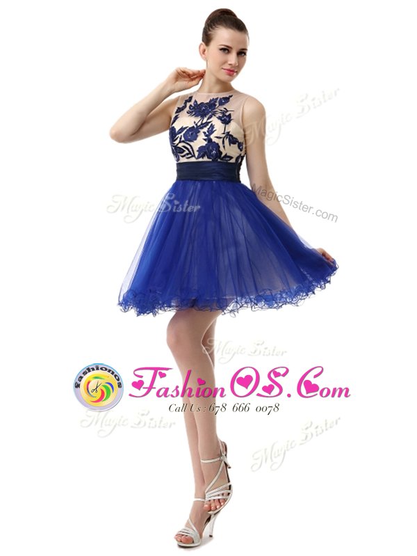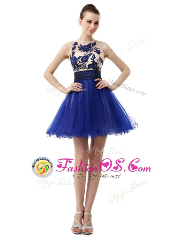 Home >  Prom Dresses >  Perfect Prom Dresses > Scoop Knee Length A-line Sleeveless Royal Blue Prom Gown Clasp Handle