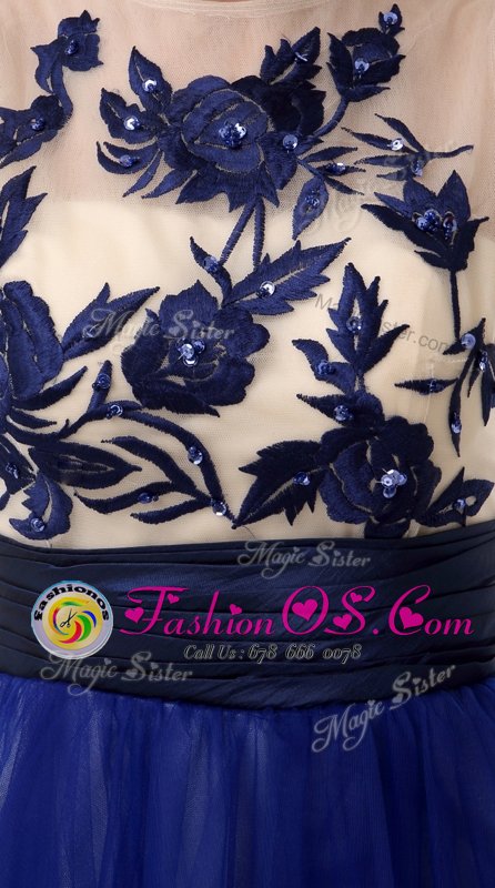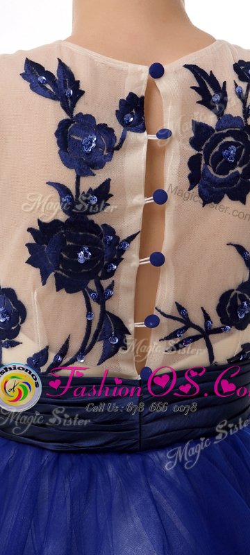 Scoop Knee Length A-line Sleeveless Royal Blue Prom Gown Clasp Handle