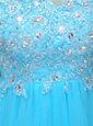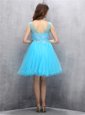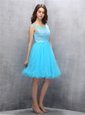 Scoop Knee Length Zipper Prom Dress Blue and In for Prom with Beading and Appliques