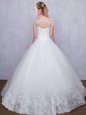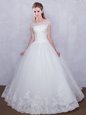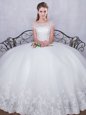 Scoop Lace Bridal Gown White Lace Up Cap Sleeves Floor Length
