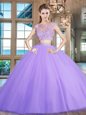 Scoop Lavender Cap Sleeves Beading and Appliques Floor Length Quinceanera Gowns