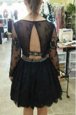 Scoop Long Sleeves Knee Length Lace Backless Homecoming Dress with Black