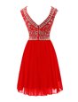 Scoop Mini Length A-line Sleeveless Red Prom Party Dress Zipper