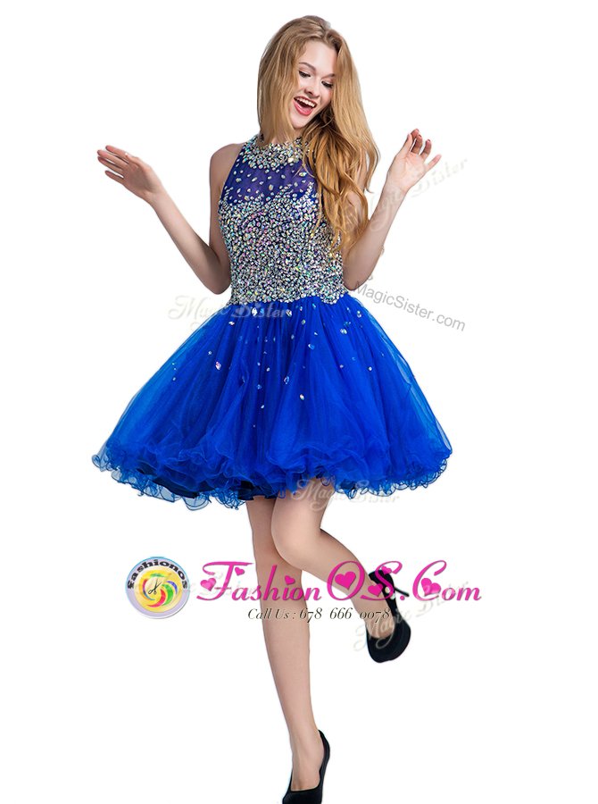 Scoop Mini Length Royal Blue Cocktail Dresses Tulle Sleeveless Beading