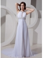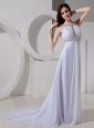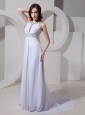 Scoop Neckline Beaded Decorate Waist Chiffon Court Train New Style 2013 Prom Gowns Custom Made