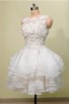 Scoop Organza and Lace Sleeveless Knee Length Prom Evening Gown and Lace