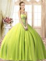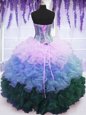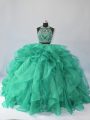 Scoop Organza and Tulle and Lace Sleeveless With Train Quince Ball Gowns Brush Train and Beading and Lace and Ruffles