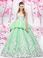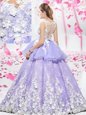 Scoop Organza and Tulle Sleeveless Floor Length Quinceanera Dress and Lace and Appliques