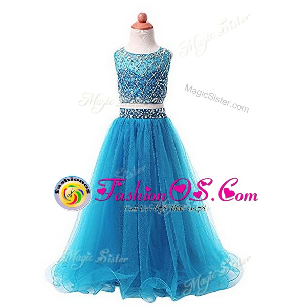 Scoop Organza Sleeveless Floor Length Toddler Flower Girl Dress and Beading