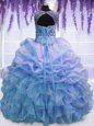Home >  Quinceanera Dresses >  Unique Quinceanera Dresses > Scoop Organza Sleeveless Floor Length Vestidos de Quinceanera and Beading and Ruffles