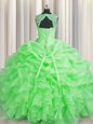 Scoop Pick Ups Yellow Sleeveless Organza Lace Up 15th Birthday Dress for Military Ball and Sweet 16 and Quinceanera