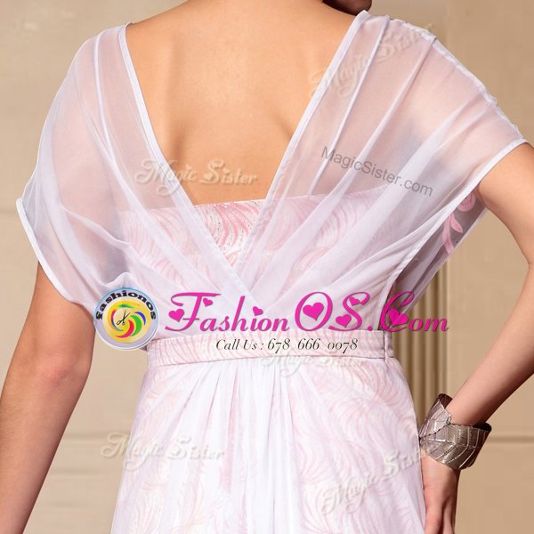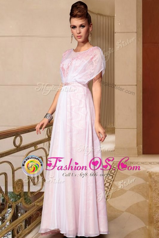 Home >  Prom Dresses >  Perfect Prom Dresses > Scoop Pink Chiffon Side Zipper Dress for Prom Cap Sleeves Ankle Length Beading