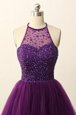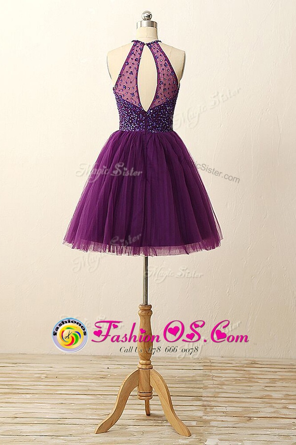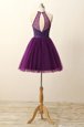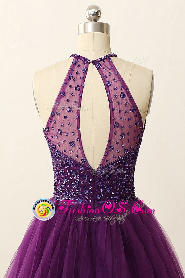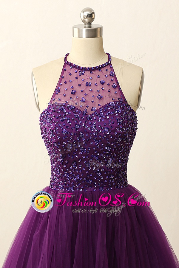 Home >  Prom Dresses >  Perfect Prom Dresses > Scoop Purple Tulle Zipper Prom Party Dress Sleeveless Mini Length Sequins