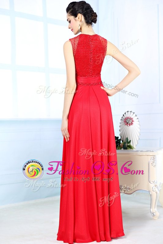 Scoop Red Column/Sheath Beading Prom Dress Zipper Chiffon Sleeveless Floor Length