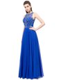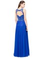 Scoop Royal Blue Column/Sheath Beading Womens Evening Dresses Zipper Chiffon Sleeveless Floor Length