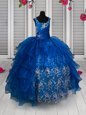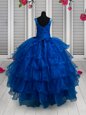 Home >  Special Occasion Dresses >  New Style Little Girl Pageant Dresses > Scoop Royal Blue Lace Up Little Girls Pageant Dress Beading and Lace and Ruffled Layers Sleeveless Floor Length