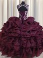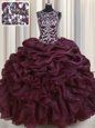 Home >  Quinceanera Dresses >  Perfect Quinceanera Dresses > Scoop See Through Organza Sleeveless Floor Length Vestidos de Quinceanera and Beading and Pick Ups