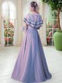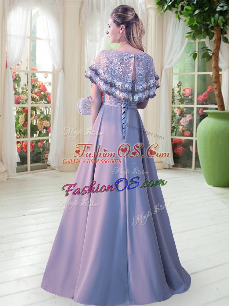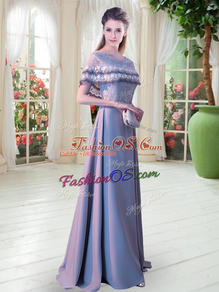 Scoop Short Sleeves Lace Up Prom Dress Grey Satin