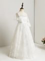 Scoop Side Zipper Lace Toddler Flower Girl Dress in White