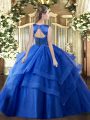 Scoop Sleeveless 15th Birthday Dress Floor Length Ruffled Layers Teal Tulle