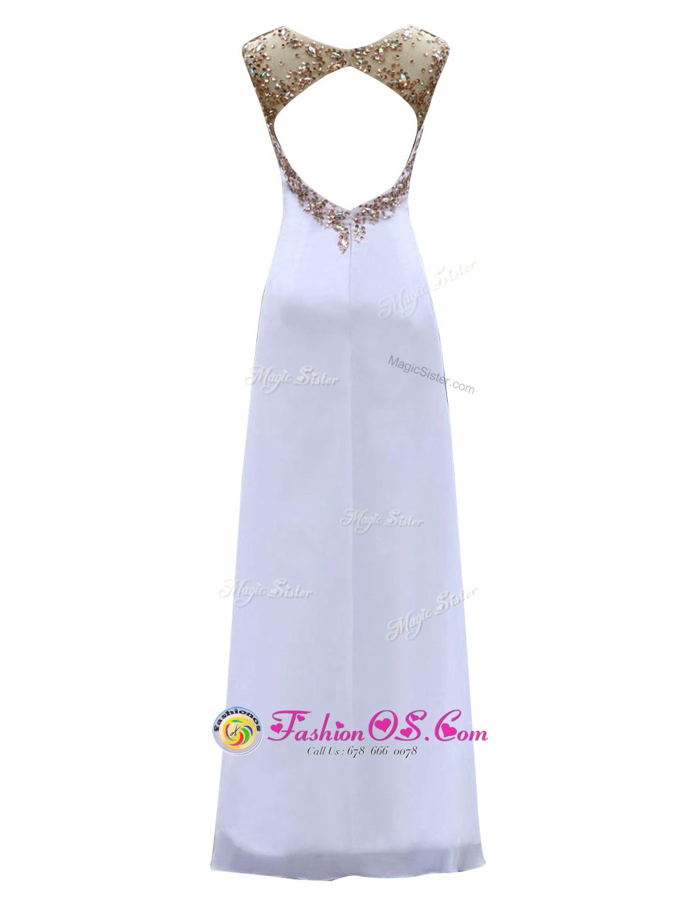 Scoop Sleeveless Backless Evening Dress White Chiffon