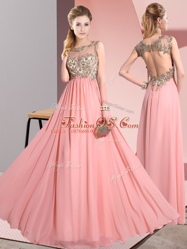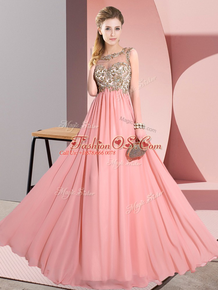 Scoop Sleeveless Backless Wedding Guest Dresses Pink Chiffon