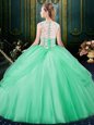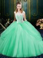 Home >  Quinceanera Dresses >  Puffy Quinceanera Dresses > Scoop Sleeveless Ball Gown Prom Dress Floor Length Lace and Pick Ups Apple Green Tulle