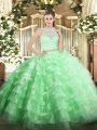 Home >  Quinceanera Dresses >  New Arrival Quinceanera Dresses > Scoop Sleeveless Ball Gown Prom Dress Floor Length Lace and Ruffled Layers Apple Green Tulle