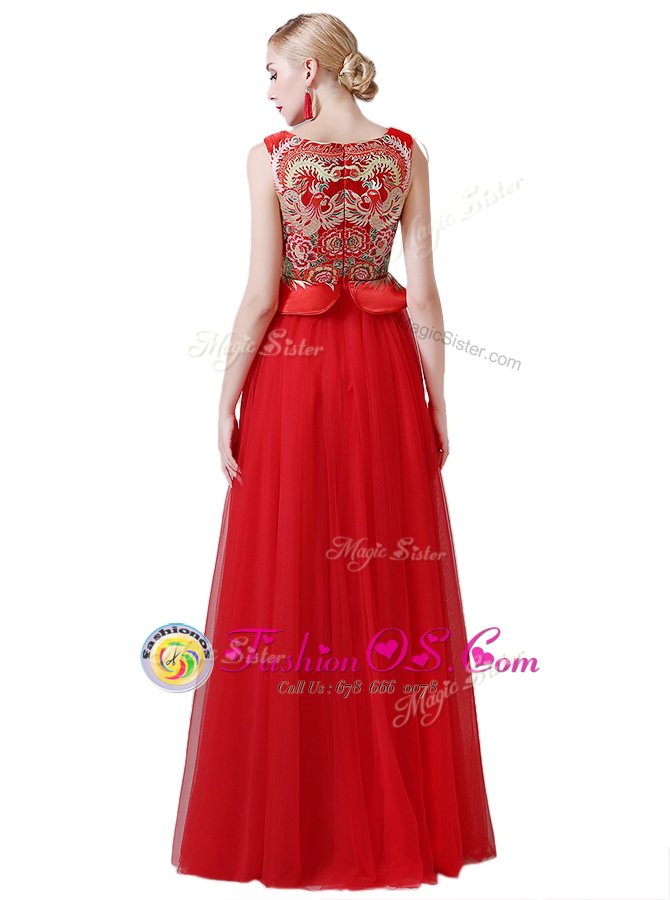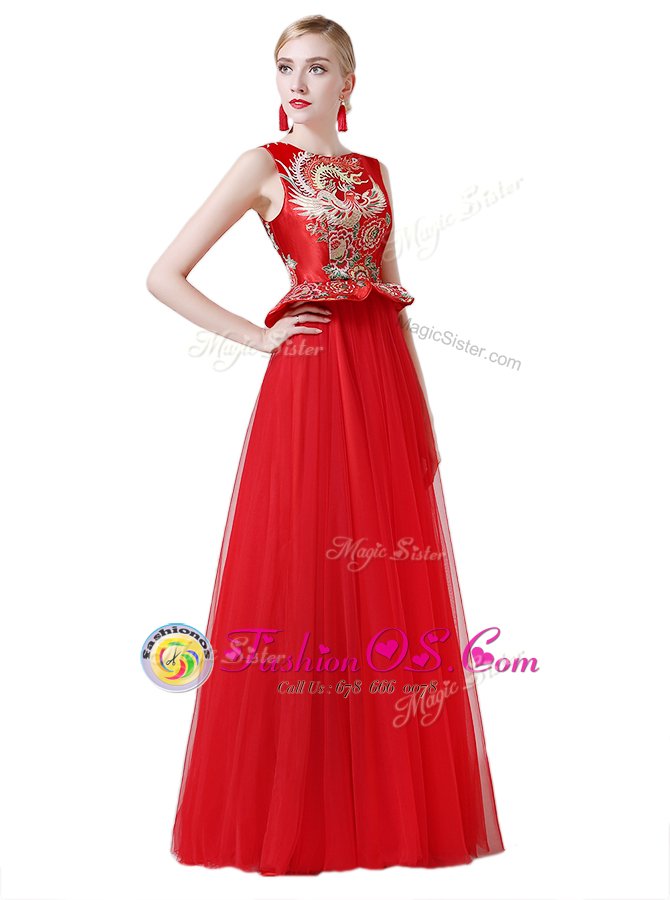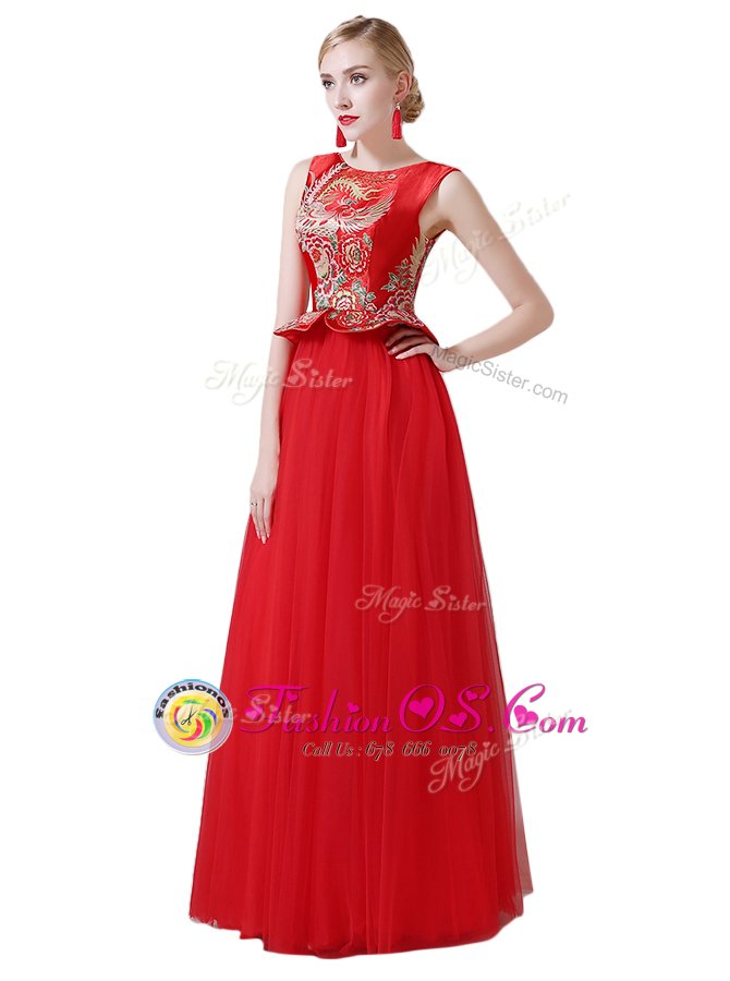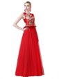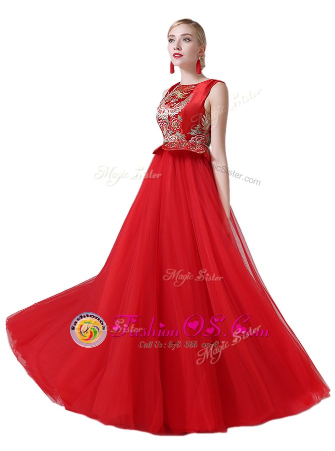 Scoop Sleeveless Beading and Appliques Zipper Prom Evening Gown