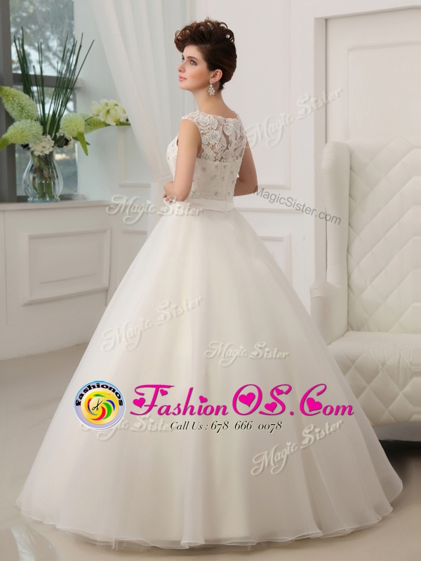 Scoop Sleeveless Beading and Appliques Zipper Wedding Dress