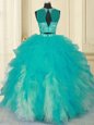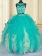 Scoop Sleeveless Beading and Ruffles Zipper Quinceanera Dresses