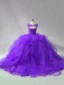 Scoop Sleeveless Brush Train Lace Up Vestidos de Quinceanera Purple Organza