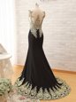 Scoop Sleeveless Brush Train Side Zipper With Train Beading and Appliques Prom Gown