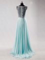 Scoop Sleeveless Brush Train Zipper Homecoming Dress Aqua Blue Chiffon