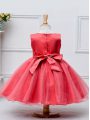 Scoop Sleeveless Child Pageant Dress Knee Length Lace and Bowknot Hot Pink Tulle