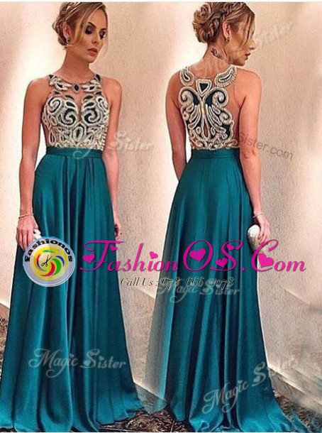 Scoop Sleeveless Floor Length Appliques Zipper Prom Gown with Teal