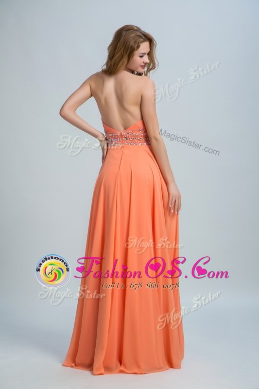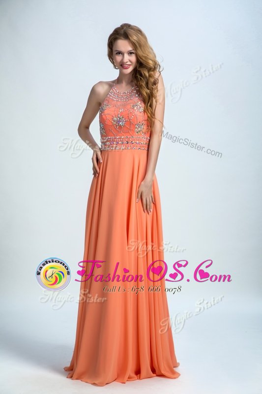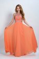Home >  Prom Dresses >  Perfect Prom Dresses > Scoop Sleeveless Floor Length Beading Orange Chiffon