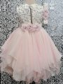 Home >  Special Occasion Dresses >  Mini Quinceanera Dresses > Scoop Sleeveless Kids Pageant Dress Asymmetrical Beading and Hand Made Flower Baby Pink Chiffon