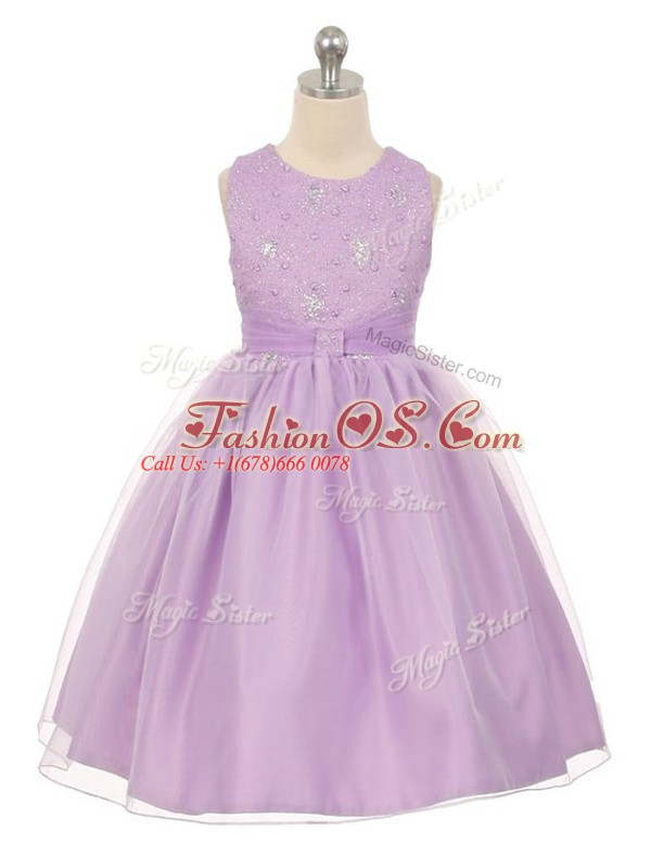 Scoop Sleeveless Kids Pageant Dress Knee Length Beading Lavender Tulle