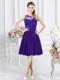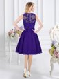 Scoop Sleeveless Knee Length Beading Lace Up Quinceanera Dama Dress with Grey