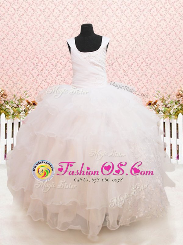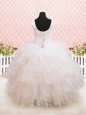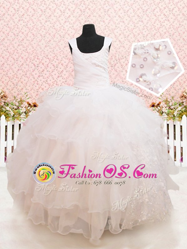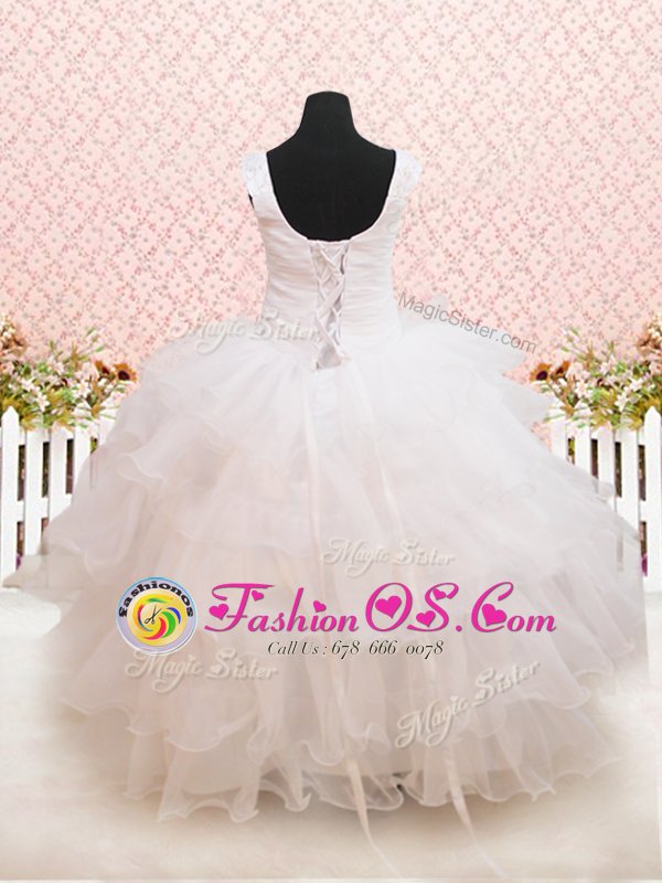 Scoop Sleeveless Lace Up Floor Length Beading and Ruffled Layers and Sequins Toddler Flower Girl Dress