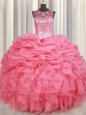Home >  Quinceanera Dresses >  Custom Made Quinceanera Dresses > Scoop Sleeveless Lace Up Floor Length Beading and Ruffles and Pick Ups 15 Quinceanera Dress