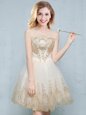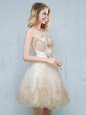 Scoop Sleeveless Lace Up Mini Length Appliques Bridesmaid Gown