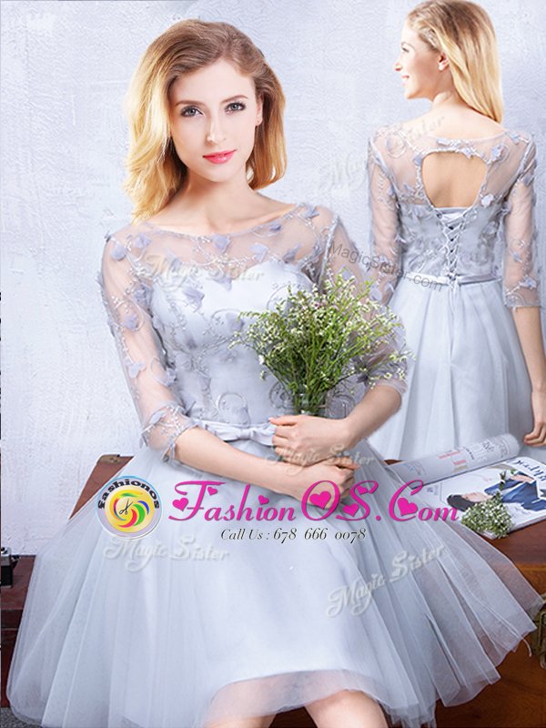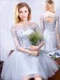 Scoop Sleeveless Lace Up Quinceanera Court Dresses Grey Tulle