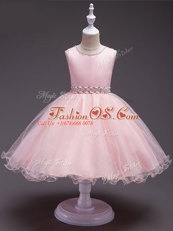 Home >  Special Occasion Dresses >  New Style Little Girl Pageant Dresses > Scoop Sleeveless Little Girl Pageant Gowns Knee Length Beading Baby Pink Organza