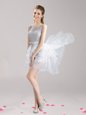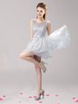 Home >  Prom Dresses >  Perfect Prom Dresses > Scoop Sleeveless Mini Length Lace and Ruffles and Bowknot Lace Up Dress for Prom with Grey