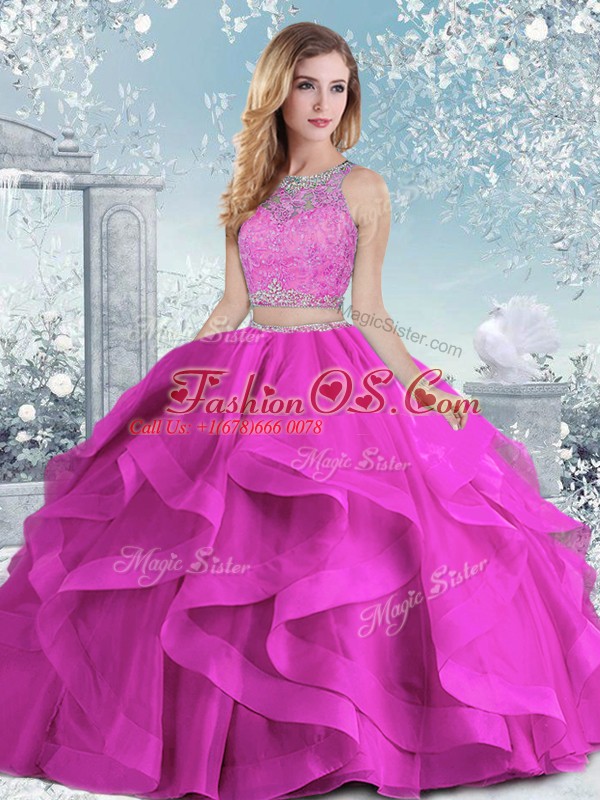 Home >  Quinceanera Dresses >  Quinceanera Dresses 2018 > Scoop Sleeveless Organza Ball Gown Prom Dress Beading and Ruffles Clasp Handle