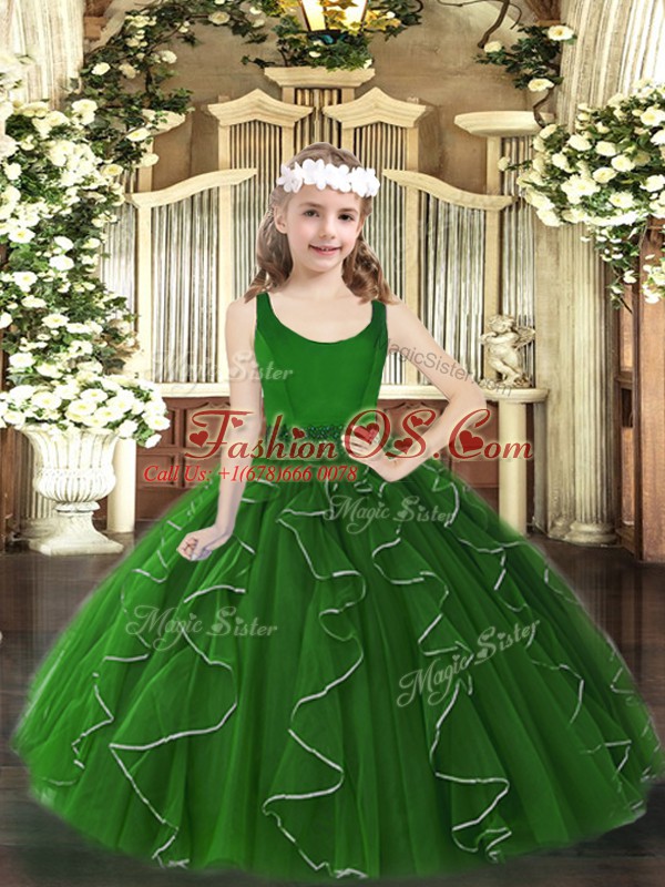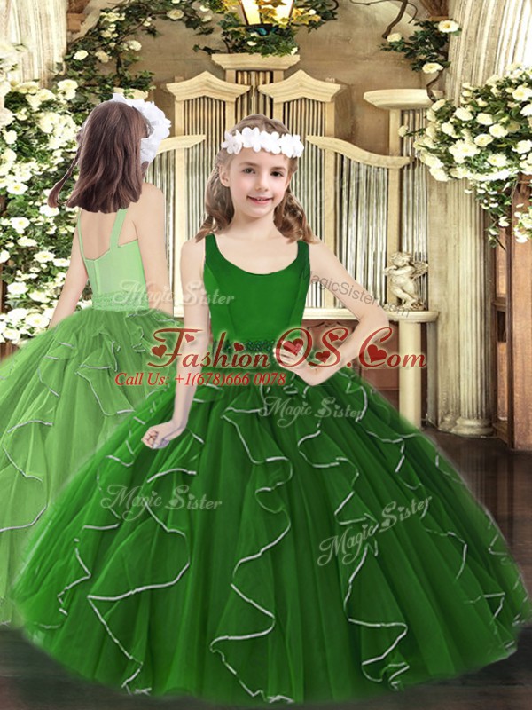 Scoop Sleeveless Organza Little Girl Pageant Dress Beading and Ruffles Zipper