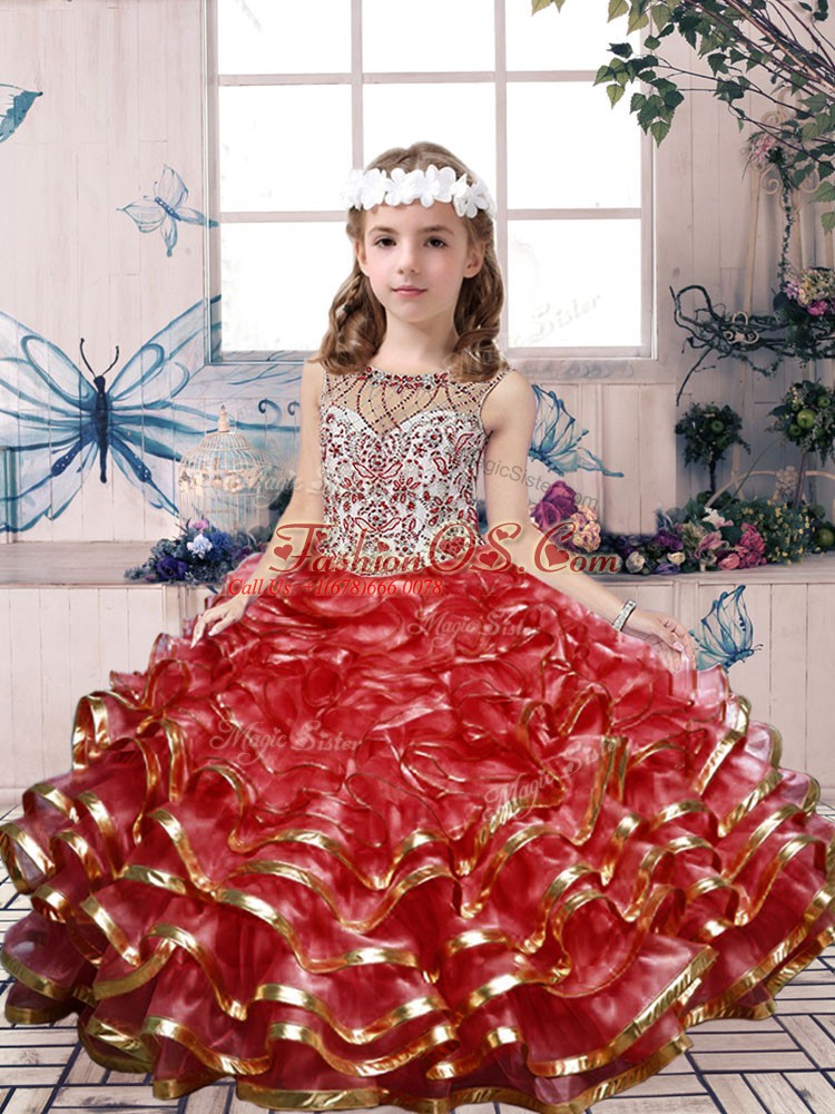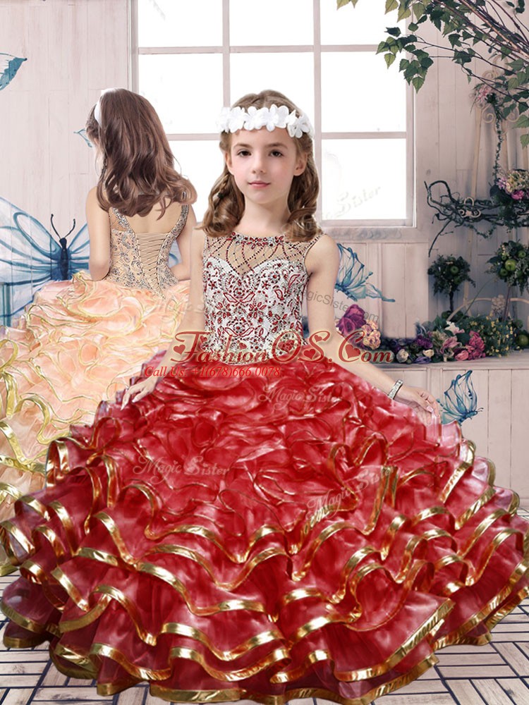 Scoop Sleeveless Organza Little Girls Pageant Gowns Beading and Ruffles Lace Up