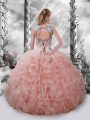 Scoop Sleeveless Organza Sweet 16 Dress Beading and Ruffles Lace Up